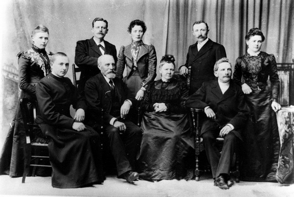 Catharina Quatmann, geb. Brackel, * Rieste 14.04.1840, + 14.02.1930 auf Darrenkamp, Anerbin auf Darrenkamp, x Cappeln 24.10.1864 Carl Quatmann, * Elsten 26.11.1836, + 06.04.1929 auf Darrenkamp, Zeller auf Darrenkamp, mit ihrer Familie